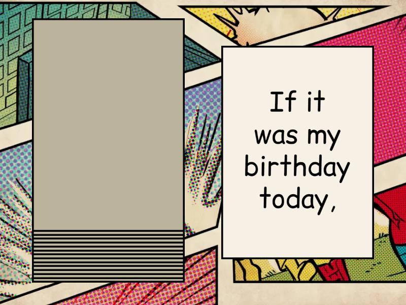 If I had to learn a new language,, If I won a lottery,, If the Internet stopped working,, If I could have one magical power,, If I could be an animal,, If I had my own flat somewhere by the sea,, If I could stay at home all day long,, If it was summer,, If it was my birthday today,, If I had to cook smth for dinner,, If I had a day off today,, If I didn't have any friends,, If I was a teacher,, If I needed money,, If my friend got into trouble,.