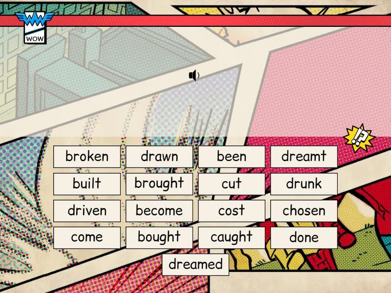 been, become, broken, brought, built, bought, caught, chosen, come, cost, cut, done, drawn, dreamed, dreamt, drunk, driven,