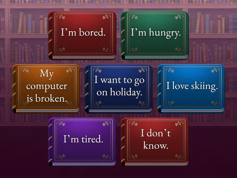 I don’t know. - Why not ask your sister?, I love skiing. - Let's go to the mountains., I’m hungry. - Shall we order a pizza?, I’m tired. - Why don't we play football later?, My computer is broken. - Why not buy a new laptop?, I want to go on holiday. - Let's go to Italy in May., I’m bored. - Why don't we fish now?,