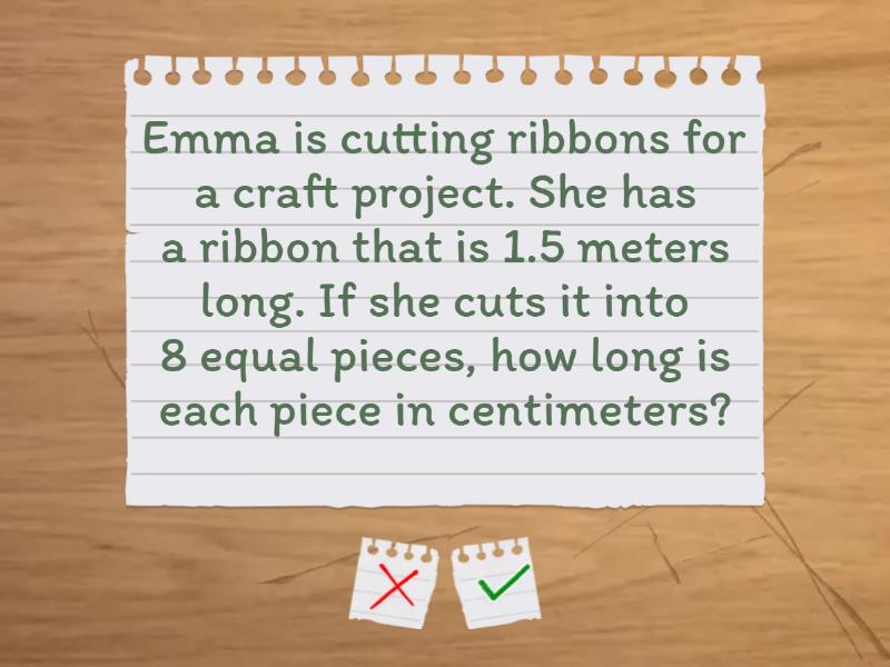 The length of the school playground is 45 meters. If Sarah walks 2500 centimeters from one end to the other, how many meters has she walked? - Answer: 45 m - 35 m = 22.5 m, Emma is cutting ribbons for a craft project. She has a ribbon that is 1.5 meters long. If she cuts it into 8 equal pieces, how long is each piece in centimeters? - Answer: 150 cm divided by 8 = 18.75 cm, A construction worker needs to cut a steel rod that is 3.25 meters long into pieces that are 0.5 meters each. How many pieces of steel rod will he get? - Answer: 3.25 m divided by 0.5 m = 6.5 pieces, The Dublin City Marathon is 42.2 kilometers long. If Sarah has completed 25,000 meters of the marathon, how many more meters does she need to run to finish the race? - Answer: 42,200 m - 25,000 m = 17,200 m,
