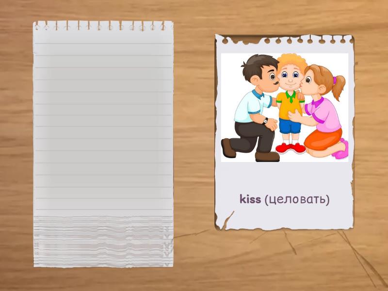 bring (приносить), cry (плакать), drink (пить), eat (есть), drive (водить), dance (танцевать), cook (готовить), admire (восхищаться, любоваться), fly (летать), go (идти), hop (скакать), jump (прыгать), give (давать), hide (прятать), kiss (целовать), hug (обнимать), laugh (смеяться), paint (рисовать красками / раскрашивать), play (играть), read (читать), ride (кататься), run (бегать), sing (петь), sit (сидеть), sleep (спать), smell (нюхать, пахнуть), smile (улыбаться), speak (говорить), stand (стоять), swim (плавать), take (брать), think (думать), wait (ждать), watch (смотреть), walk (гулять, ходить), work (работать), write (писать), draw (рисовать карандашом/ручкой).