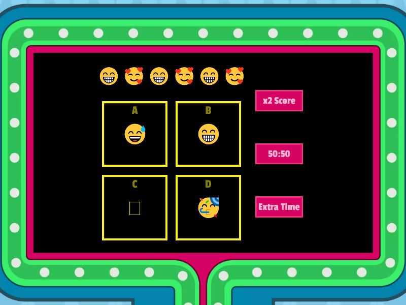 1) 😁🥰😁🥰😁🥰 a) 😅 b) 😁 c) 🥸 d) 🥳 2) 😎😇😎😇😎😇 a) 😎 b) 😍 c) 🤩 3) 🤖👻🤖👻 a) 🤖 b) 🤠 c) 👽 4) 🦁🐸🦁🐸 a) 🦊 b) 🐹 c) 🦁 d) 🐼 5) 🐍🐠🐍🐠 a) 🦐 b) 🐍 c) 🦀 6) 🌼🌹🌼🌹 a) 🌼 b) 🌺 c) 🌻 7) 🌏⭐️🌏⭐️ a) 💫 b) 🌜 c) 🌏 8) ☀️❄️☀️❄️ a) ❄️ b) ☀️ c) 🌪️ d) 🌈