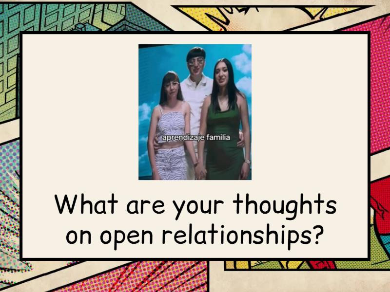 Do you think social media nowadays is too depressing? , Are there any daily routines or habits you consider important? , Mention 3 things you want to do before you turn 60 years old. , How was your long weekend? Give me details (food, smells, feelings)., If you could be a child again for a day, what would you do? , Are you a generous or stingy person (tacaña)? Why? , Mexico should start asking foreigners for visa. Agree or Disagree? , What are your thoughts on open relationships? , What is the strangest thing that happened to you that you can’t logically explain? , When was the last time you were frustrated over something ?, Can you describe a time when you felt particularly proud of yourself? , You have 1 minute to talk about a topic of your preference. , You have 1 minute to talk about a topic of your preference. , FREE CARD. It's your turn to ask your classmate a question., FREE CARD. It's your turn to ask your classmate a question., FREE CARD. It's your turn to ask your classmate a question., What was the last problem you solved and how did you do it? , Are you into cars? What's your ideal car? , What have you been putting your energy into recently? , Give me your opinion. Influencers don't need to be political activists. , Give me your opinion. Influencers should only promote a product after using it for 3 months. , Give me your opinion. Couples should go to therapy before getting married. , Give me your opinion. It is necessary to tip waiters. , When was the last time you did something new? , Have you ever planned a romantic dinner for someone? How did it go? , Give me your opinion. If you watch horror movies, sad movies, and action movies, you attract negativity in your life?, Give me your opinion. Kind people typically get walked all over in life (pisoteadas siempre).,