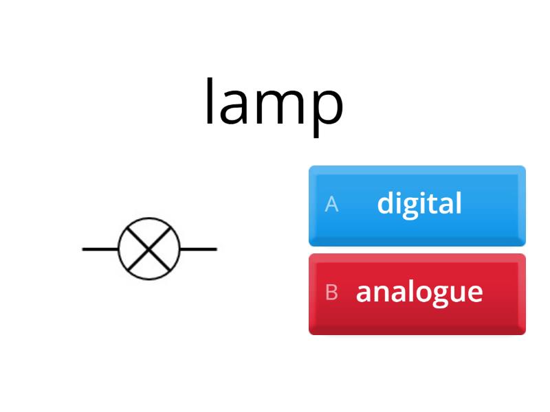 1) lamp a) digital b) analogue 2) switch a) digital b) analogue 3) relay a) digital b) analogue 4) variable resistor a) digital b) analogue 5) motor a) digital b) analogue 6) LED (light emitting diode) a) digital b) analogue 7) LDR (light dependent resistor) a) digital b) analogue 8) thermistor a) digital b) analogue 9) solenoid actuator a) digital b) analogue 10) microphone a) digital b) analogue 11) loudspeaker a) digital b) analogue 12) buzzer a) digital b) analogue