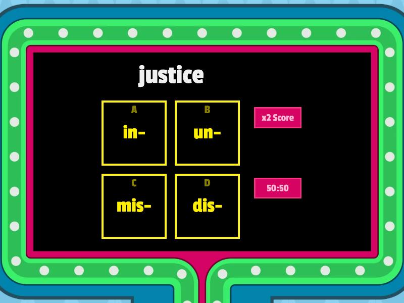 1) justice a) in- b) un- c) mis- d) dis- 2) frequent a) un- b) mis- c) in- d) un- 3) sane a) un- b) in- c) un- d) dis- 4) formal a) in- b) mis- c) dis- d) un- 5) humane a) un- b) mis- c) in- d) mis- 6) honest a) mis- b) un- c) dis- d) in- 7) order a) dis- b) mis- c) un- d) mis- 8) connect a) in- b) mis- c) mis- d) dis- 9) approve a) in- b) un- c) dis- d) in- 10) behave a) dis- b) un- c) un- d) mis- 11) fit a) un- b) in- c) in- d) mis- 12) spell a) un- b) in- c) mis- d) un- 13) fortune a) mis- b) un- c) un- d) in- 14) aware a) mis- b) in- c) mis- d) un- 15) known a) dis- b) dis- c) un- d) in- 16) easy a) in- b) dis- c) in- d) un- 17) common a) mis- b) dis- c) in- d) un- 18) lucky a) mis- b) un- c) dis- d) dis-