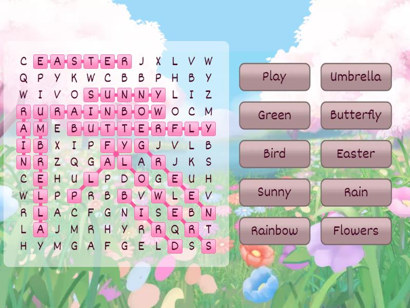Bird - Bird, Easter - Easter, Flowers - Flowers, Rain - Rain, Sunny - Sunny, Butterfly - Butterfly, Play - Play, Green - Green, Rainbow - Rainbow, Umbrella - Umbrella,