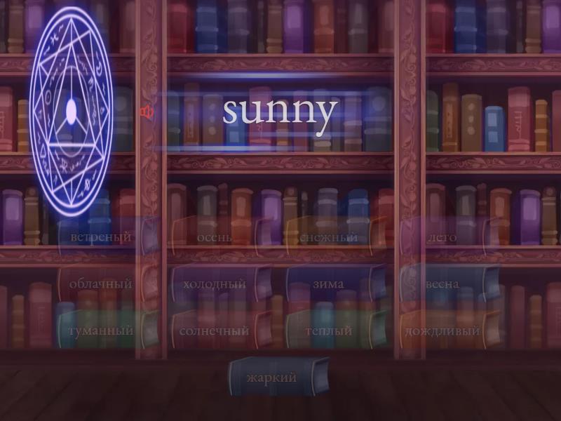 солнечный - sunny, теплый - warm, дождливый - rainy, ветреный - windy, жаркий - hot, холодный - cold, облачный - cloudy, туманный - foggy, снежный - snowy, зима - winter, весна - spring, лето - summer, осень - autumn,