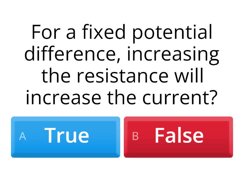 1) For a fixed potential difference, increasing the resistance will increase the current? a) True b) False 2) Increasing the temperature of a wire will increase its resistance? a) True b) False 3) What component has an IV graph that is this shape? a) Diode b) Lamp c) Fixed Resistor 4) What component has an IV graph that is this shape? a) Diode b) Lamp c) Fixed Resistor 5) What component has an IV graph that is this shape? a) Diode b) Lamp c) Fixed Resistor 6) Each lamp is identical and has a resistance of 5.6 Ω. What is the total resistance of the circuit? a) 16.8 Ω b) 1.9 Ω c) 5.6 Ω d) <5.6 Ω 7) The total resistance of the circuit is 9 Ω. Calculate the resistance of Q. a) 3.4 Ω b) 5.5 Ω c) 0.3 Ω d) Not enough information 8) Calculate the current that flows through resistor Y. a) 1 A b) 2 A c) 3 A d) 1.5A 9) the resistance of Y is 4Ω. What is the resistance of X? a) 8 Ω b) 4 Ω c) 2 Ω d) 1 Ω 10) The power supply and lamps are identical in both circuits. Which circuit will have the lowest resistance? a) Circuit X b) Circuit Y 11) Which statements correctly explain why the resistance of X is lower than Y. (Select 2) a) The current is higher in X. b) The current is higher in Y. c) Circuit X provides more routes for the charges to flow. d) Circuit Y provides more routes for the charges to flow.
