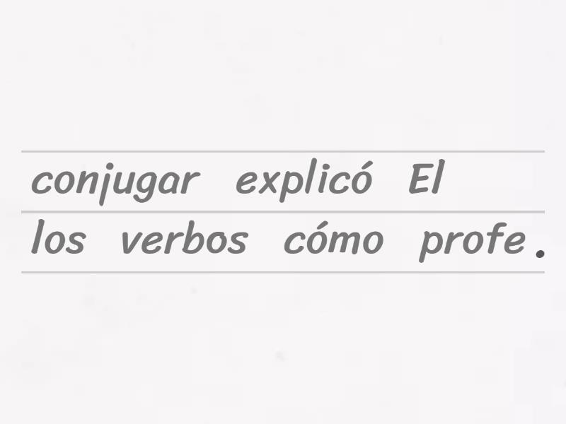 El profe explicó cómo conjugar los verbos., El detective investigó quién se robó el dinero., Ayer yo no jugué fútbol porque me dolía la cabeza., Esta semana yo empecé a ir al gimnasio., ¿Dónde pusiste el balón de fútbol?, ¿Cuántas personas hubo en la fiesta?, Yo no tuve tiempo de ir al supermercado ayer., Anoche yo estuve muy ocupada haciendo un proyecto. , Yo me tropecé cerca de parada del autobús., Yo no me equivoqué en el examen y saqué 100 %.,