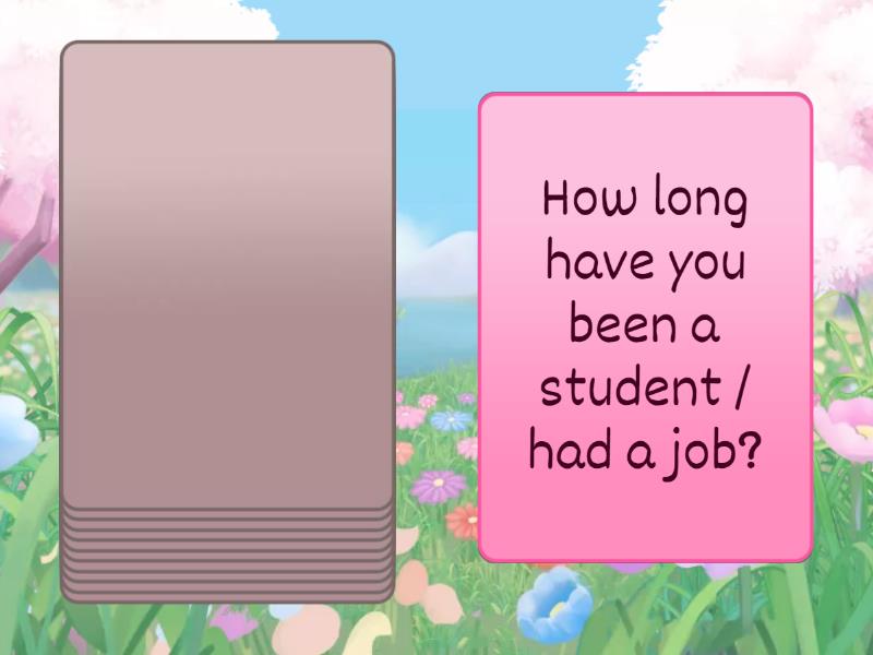How long have you studied English?, How long have you had long / short hair?, How long have you had a mobile phone?, How long have you been a student / had a job?, How long have you been married / single?, How long have you lived in your house / flat?, How long have you lived in this country?, How long have you lived in this city?, How long have you known your classmates in this group?, How long have you been awake today?, How long have you known how to use a computer?.