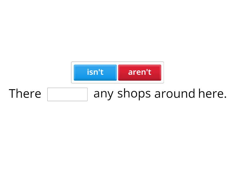 There ____ any shops around here. There are ____ monuments in my town. There ____ a famous restaurant in my town. There ____ a big hotel in my street. There ____ some shops here. There aren't ____ pretty trees in the park. There isn't ____ library around here. There is ____ amazing cinema here.