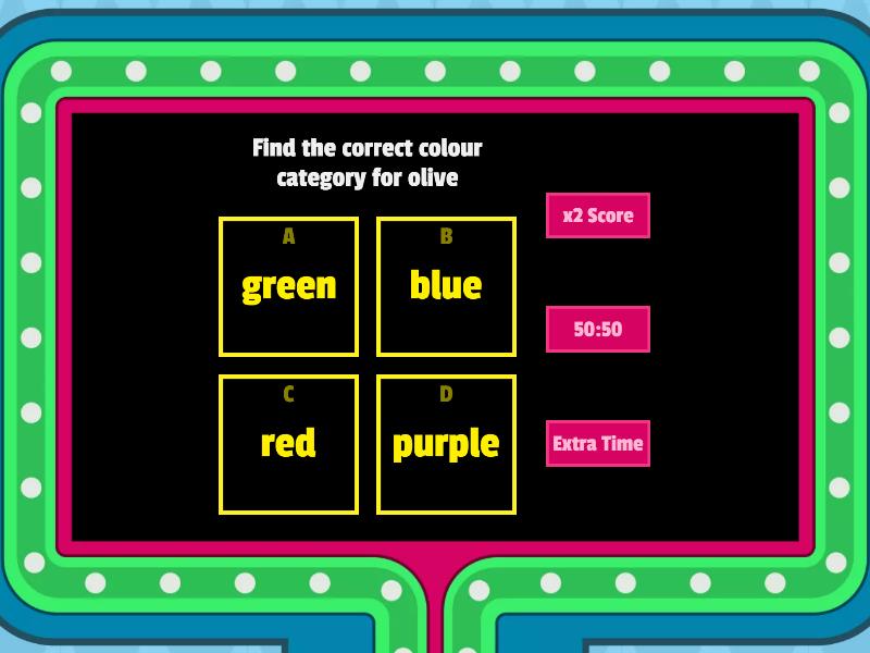 1) Find the correct colour category for olive a) green b) blue c) red d) purple 2) Find the correct colour category for violet a) green b) blue c) red d) purple 3) Find the correct colour category for navy a) green b) blue c) red d) purple 4) Find the correct colour category for chartreuse a) green b) blue c) red d) purple 5) Find the correct colour category for mauve a) green b) blue c) red d) purple 6) Find the correct colour category for lilac a) green b) blue c) red d) purple 7) Find the correct colour category for cobalt a) green b) blue c) red d) purple 8) Find the correct colour category for cerulean a) green b) blue c) red d) purple 9) Find the correct colour category for mint a) green b) blue c) red d) purple 10) Find the correct colour category for carmine a) green b) blue c) red d) purple 11) Find the correct colour category for wine a) green b) blue c) red d) purple 12) Find the correct colour category for scarlet a) green b) blue c) red d) purple 13) Find the correct colour category for crimson a) green b) blue c) red d) purple 14) Find the correct colour category for lavender a) green b) blue c) red d) purple 15) Find the correct colour category for lime a) green b) blue c) red d) purple 16) Find the correct colour category for magenta a) green b) blue c) red d) purple 17) Find the correct colour category for burgandy a) green b) blue c) red d) purple 18) Find the correct colour category for cornflower a) green b) blue c) red d) purple 19) Find the correct colour category for forest a) green b) blue c) red d) purple 20) Find the correct colour category for azure a) green b) blue c) red d) purple