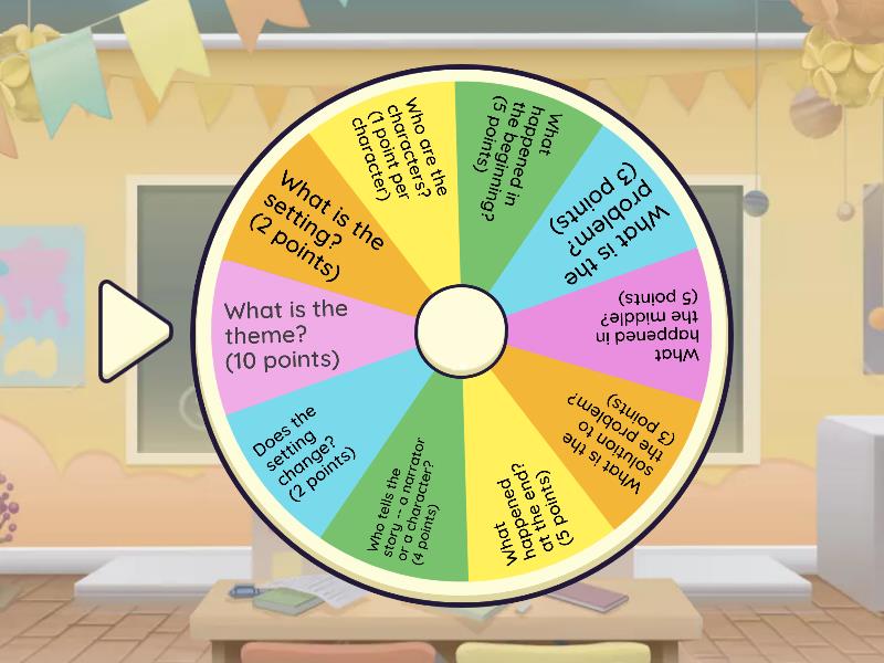 1) What is the setting? (2 points) 2) Who are the characters? (1 point per character) 3) What happened in the beginning? (5 points) 4) What is the problem? (3 points) 5) What happened in the middle? (5 points) 6) What is the solution to the problem? (3 points) 7) What happened at the end? (5 points) 8) Who tells the story -- a narrator or a character? (4 points) 9) Does the setting change? (2 points) 10) What is the theme? (10 points)
