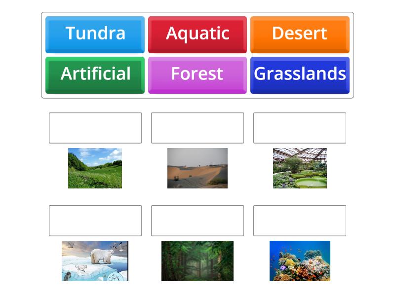 Forest, Grasslands, Tundra, Desert, Aquatic, Artificial ,