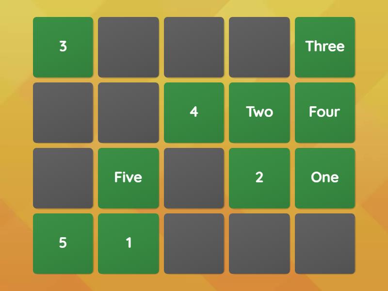 One - 1, Two - 2, Three - 3, Four - 4, Five - 5, Six - 6, Seven - 7, Eight - 8, Nine - 9, Ten - 10,