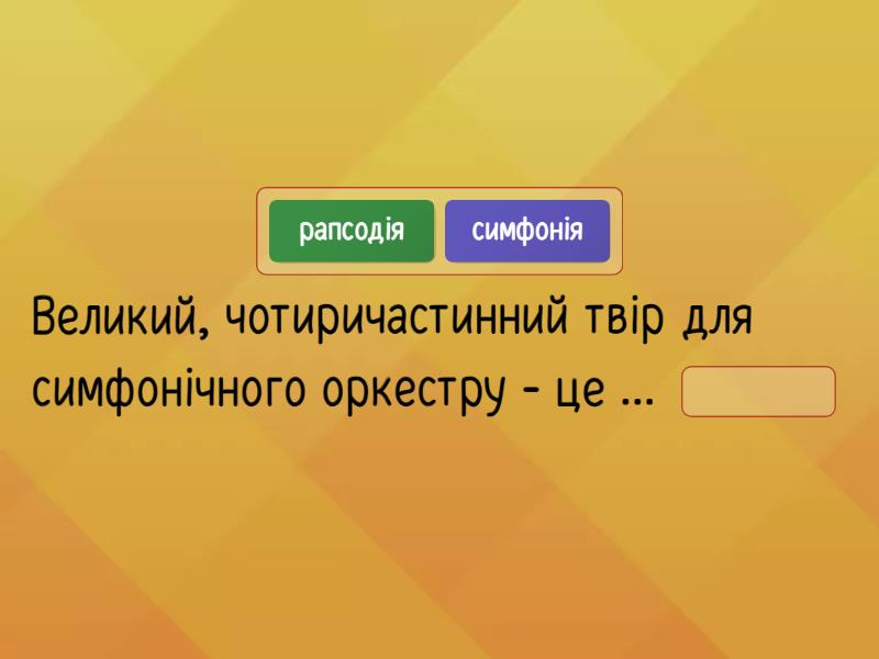 Великий, чотиричастинний твір для симфонічного оркестру - це ... ____ Музичний твір на тему природи, сільського життя - це ... ____ Слово "пастораль" означає - .... ____ Чи вірне твердження:"у музичних пасторалях панують світлі почуття гармонії людини з природою." ____ Чи вірне твердження:"Пасторалі писали як для фортепіано так і для музично-театральних жанрів (опера, балет)". ____ Симфрнічна музика виконується в .... приміщеннях симфонічним оркестром. ____ Симфонія сформувалася у віденський класичній школі, творцями якого були композитори - ____ "Батьком" симфонії є ... . Він автор 104 симфоній ____ Який симфонічний жанр став провідним досягненням у творчості віденських класиків? ____ Про яку симфонію Бетховен написал на титулі рукопису:"Пасторальна симфонія, або спогади про сільське життя, скоріше вираження настрою, ніж звуковий живопис".____