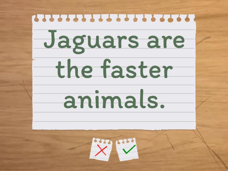 She is the smartest girl in the class., he is stronger than his friend. , This room is biggest than the other room. , she said this is the newest restaurant in the city, , Rabbits are fastest than turtles., this game is the hardest game i have ever played., my friend is the taller girl in our school., Jaguars are the faster animals.,