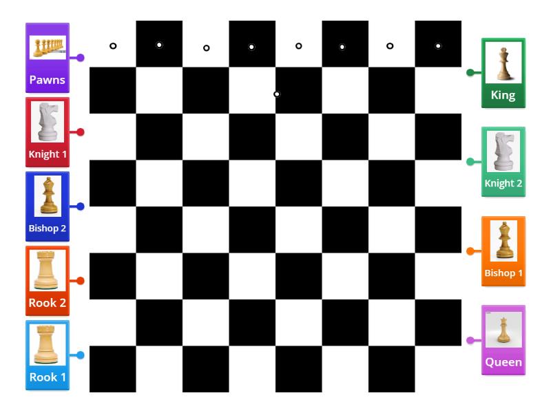 Rook 1, Knight 1, Bishop 1, King, Queen, Bishop 2, Knight 2, Rook 2, Pawns.