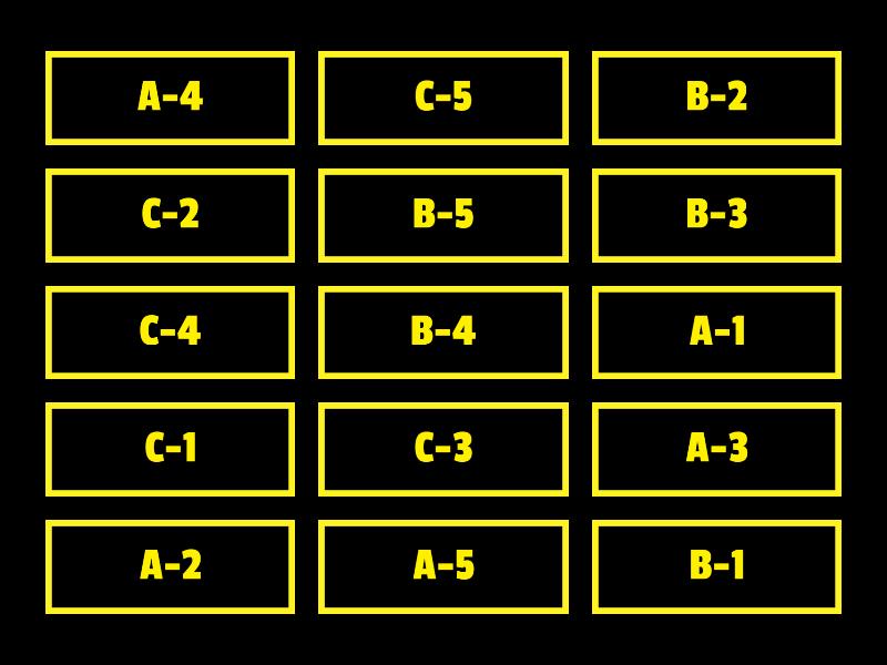 A-1 - clothes, A-2 - closet, A-3 - thousands, A-4 - fortune, A-5 - prospectors, B-1 - jeans, B-2 - wagons, B-3 - business, B-4 - Nevada, B-5 - discovered, C-1 - stripes, C-2 - hunters, C-3 - popular, C-4 - California, C-5 - camouflage,