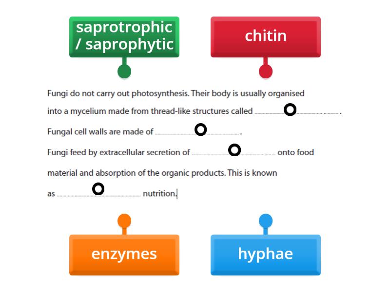 hyphae , chitin , enzymes, saprotrophic / saprophytic .
