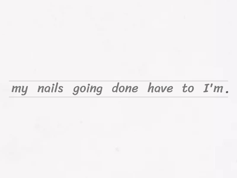 I'm going to have my nails done., She's getting her car serviced., My neighbours had their car stolen last week., He's having the house decorated., We got pizza delivered because we were too tired to cook., They had their bags damaged on the flight., My watch has stopped working. I need to get the battery changed.,