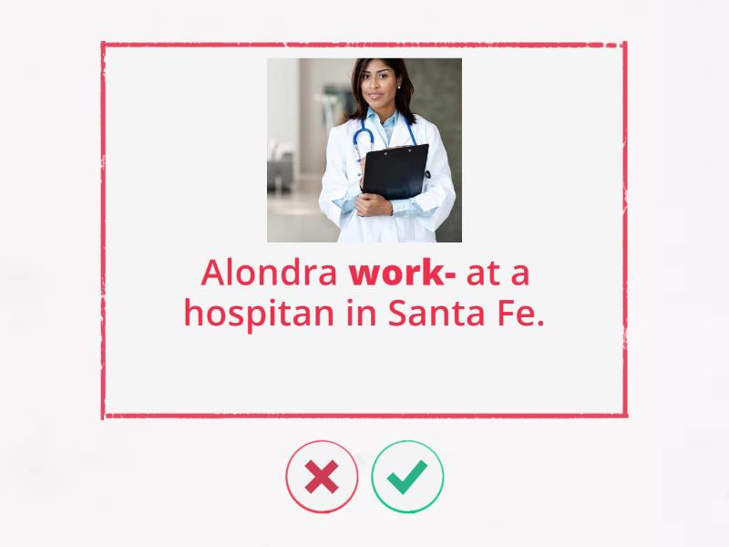 He wash- the dishes. - He washes the dishes., Aldo study- English at home - Aldo studies English at home., My sister buy- the groceries on Mondays. - My sister buys the groceries on Mondays., Alondra work- at a hospitan in Santa Fe. - Alondra works at a hospitan in Santa Fe., Ali teach- English at 9 am. - Ali teaches English at 9 am., Mr. Brown finish- his work at 7 pm. - Mr. Brown finishes his work at 7 pm., Jenny's mom pay- the house services in May. - Jenny's mom pays the house services in May.,