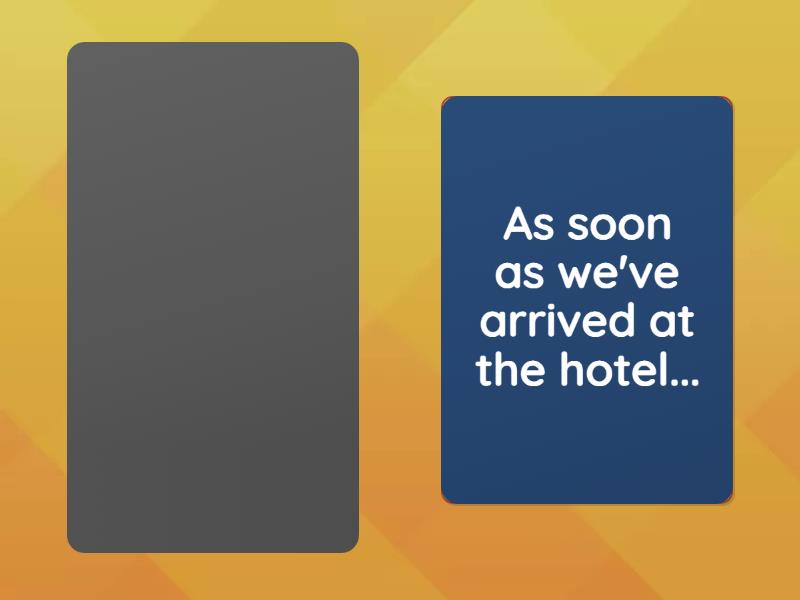 : As soon as we've arrived at the hotel..., What are you going to do when..., I'll give you a call after..., I'll do the washing up if..., I'm sure your husband will understand if..., Shh! Don't make a noise in case..., We could go for a walk after..., We must say goodbye to Louise before..., If you're not feeling better tomorrow, ..., You might get an electric shock if..., Carry on taking the antibiotics until..., Don't disturb the boss unless..., Let's take the satnav in case..., I'm going to buy a motorbike as soon as.., We'll be having a barbecue tomorrow unless..., Unless you hurry up..., If his wife has told him to do it..., We need to book the holiday soon in case..., We're going to open a bottle of champagne when..., I won't be able to start cooking dinner until...,