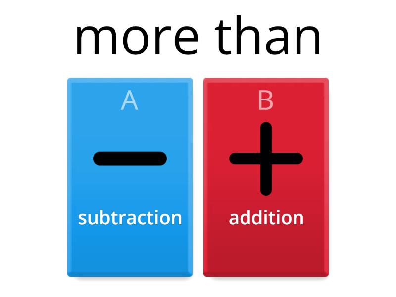 1) more than a) addition b) subtraction 2) left over a) addition b) subtraction 3) minus a) addition b) subtraction 4) altogether a) addition b) subtraction 5) plus a) addition b) subtraction 6) take away a) addition b) subtraction 7) altogether a) addition b) subtraction 8) How much will they get back? a) addition b) subtraction