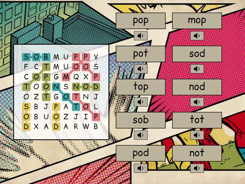 mop - mop, nod - nod, not - not, pod - pod, pop - pop, pot - pot, sob - sob, sod - sod, top - top, tot - tot,