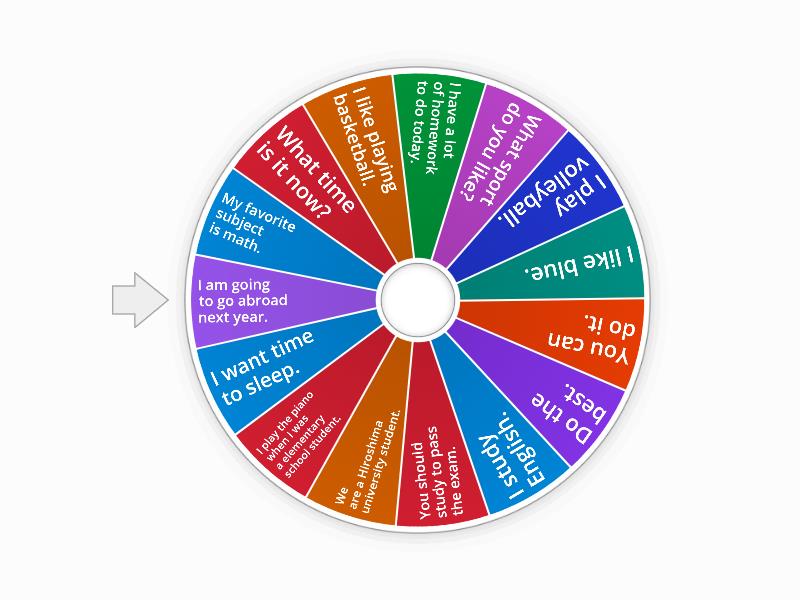 1) My favorite subject is math. 2) What time is it now? 3) I like playing basketball. 4) I have a lot of homework to do today. 5) What sport do you like? 6) I play volleyball. 7) I like blue. 8) You can do it. 9) Do the best. 10) I study English. 11) You should study to pass the exam. 12) We are a Hiroshima university student. 13) I play the piano when I was a elementary school student. 14) I want time to sleep. 15) I am going to go abroad next year.
