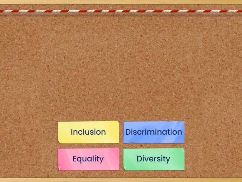 Diversity - …is acknowledging and respecting differences, such as disability, gender, race, age, marriage, sex, sexual orientation, pregnancy, religion., Equality - …is ensuring everyone has equal opportunities (children and adults), taking care to promote these opportunities for all children shows ‘equal concern’​., Discrimination - …when someone is viewed and treated negatively because of some characteristic, usually based on a stereotypical view, e.g. racist.​, Inclusion - …only occurs when you embrace diversity and take every opportunity to ensure everyone can participate.,