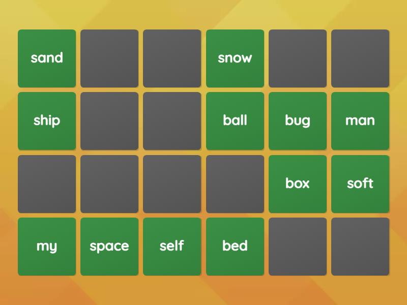 snow - man, soft - ball, sand - box, my - self, bed - bug, space - ship, cow - boy, out - side, see - saw, flash - light, for - ever, card - board,