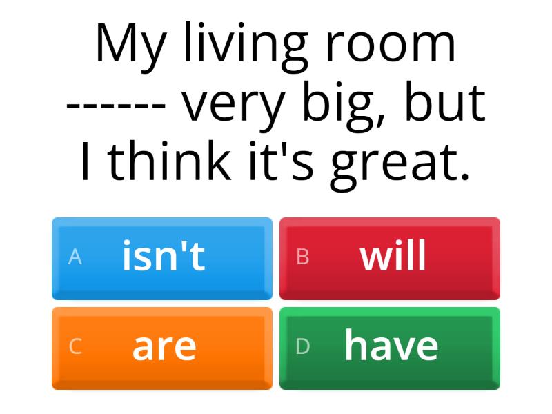 1) My living room ------ very big, but I think it's great. a) are b) have c) will d) isn't 2) ------ a table with a TV and a DVD player on it. a) There're b) There's c) This d) That 3) There ----- two lamps, pictures and posters on the wall. a) is b) are c) that d) this 4) My ----- not very tidy, but it's really comfortable. a) room's b) lamp c) sofa d) Play station 5) There are three books ------ the table next to the sofa. a) in b) at c) on d) to 6) There's a football on the floor ----- the desk. a) on b) in c) under d) over 7) ----- you live in a house or a flat? a) Do b) Does c) Have d) Had 8) How ----- bedrooms are there? a) much b) many c) mach d) money 9) ----- there a television in the living room? a) Are b) Is c) Do d) Does 10) ----- there any posters on the wall/ a) Are b) is c) am d) Do 11) My keys are ----- the drawer. a) on b) for c) in d) at 12) Steve ------at an international bank in the centre of the city. a) works b) worked c) working d) work 13) Steve favourite food is --------food. a) Chinese b) China c) India d) America 14) He --- ----skiing,snowboarding,swimming,cycling and gulf. a) like b) likes c) liking d) liked 15) He -------- along the Vancouver Seawall to Stanley Park. a) cycle b) cycling c) cycled d) cycles 16) We ---- have a garden , but we have a big balcony. a) is b) don't c) doesn't d) are 17) The weather of Vancouver-Canada is warm and -------- in summer, but it rains a lot in autumn and winter. a) sunny b) rains c) warm and sunny d) warm and cold 18) Vancouver -------- a cosmopolitan city. a) are b) is c) do d) does 19) A: Where do you ---- shopping? B: Panda a) goes b) gone c) going d) go 20) How ----- you travel? a) do b) does c) have d) has 21) -------is a good way to see the city of Vancouver. a) The supermarket b) The ferry c) The center d) Vancouver 22) ------------CDs on your bookshelf? a) is  there b) Are there c) do there d) does there 23) My sister reads a lot of --------in her free time. a) magazines b) swimming c) go outside d) surfing 24) She has a nice -----in her bedroom. a) lamp b) football c) knife d) sward 25) The shower is in the------- a) living room b) main hall c) bathroom d) bedroom