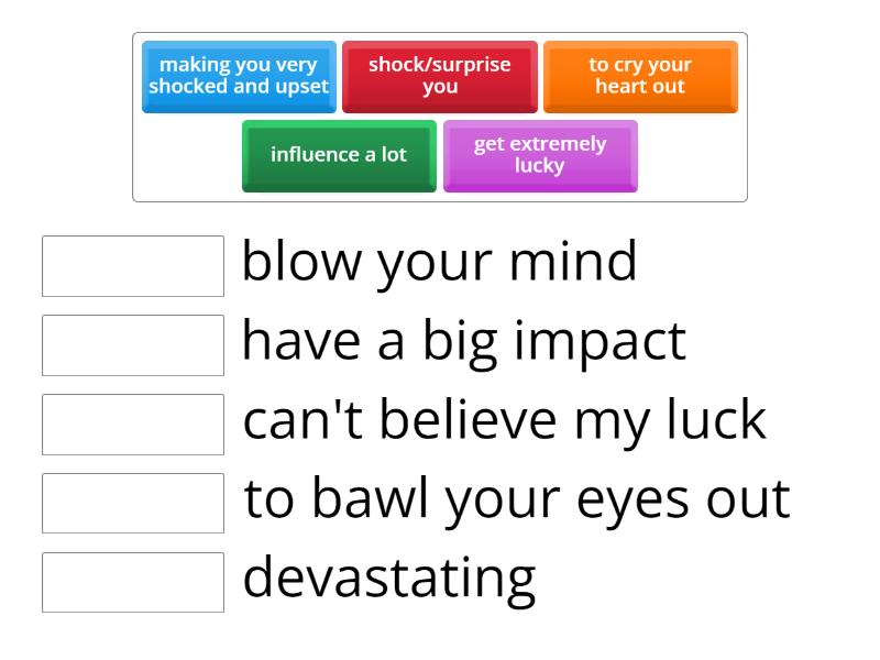 to cry your heart out - to bawl your eyes out, get extremely lucky - can't believe my luck, shock/surprise you - blow your mind, making you very shocked and upset - devastating , influence a lot - have a big impact,