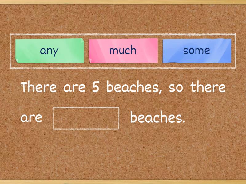 There are 5 beaches, so there are ____ beaches. There are no rivers, so there aren't ____ rivers. Are there ____ rivers in your country? There are millions of mountains, so there are ____ mountains. There are ____ ____ ____ rivers. There isn't ____ water in the deserts. It rains a lot in the city, so it has ____ ____ ____ rain. It does not rain everyday in my country, but we get ____ rain every year.