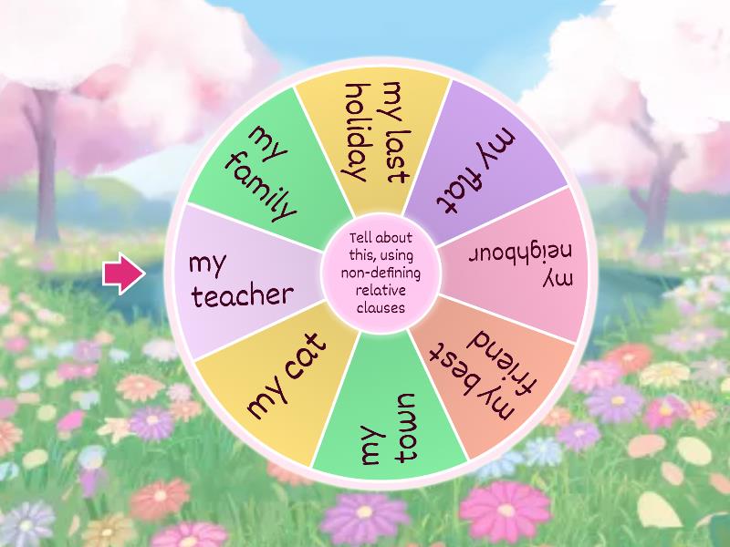 1) my family 2) my last holiday 3) my flat 4) my neighbour 5) my best friend 6) my town 7) my cat 8) my teacher