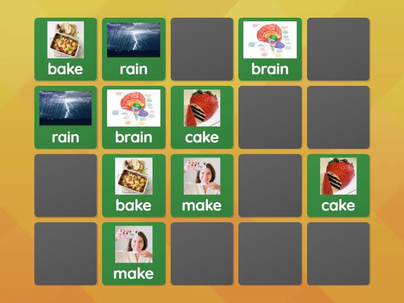 brain, cake, rain, make, bake, cape, May, steak, break, crayon,