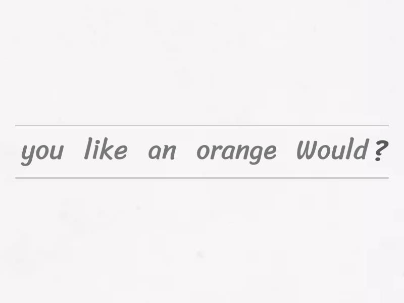Would you like an orange?, I don't like oranges, would you like some grapes?, She doesn't like vegetables, would you like a banana?, I like ice cream, would you like an egg?, He doesn't like lemons, Would you like a watermelon?, Would you like some kiwis?, I don't like beans, would you like a potato?, would you like an apple?, We don't like kiwis, She likes strawberries, would you like some bread?,