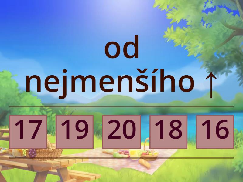 16 17 18 19 20 - od nejmenšího ↑, 15 17 18 19 20 - od nejmenšího ↑, 15 16 18 19 20 - od nejmenšího ↑, 15 16 17 19 20 - od nejmenšího ↑, 15 16 17 18 20 - od nejmenšího ↑, 15 16 17 18 19 - od nejmenšího ↑, 19 18 17 16 15 - od největšího ↓, 20 18 17 16 15 - od největšího ↓, 20 19 17 16 15 - od největšího ↓, 20 19 18 16 15 - od největšího ↓, 20 19 18 16 15 - od největšího ↓, 20 19 18 17 15 - od největšího ↓, 20 19 18 17 16 - od největšího ↓,