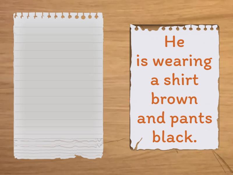: Her has blond hair., His eyes is green., She wearing a purple skirt., He is wearing a shirt brown and pants black., She read after class., He study English every night., He takes time with his friends., He go fishing on the weekend., She not wearing any.,