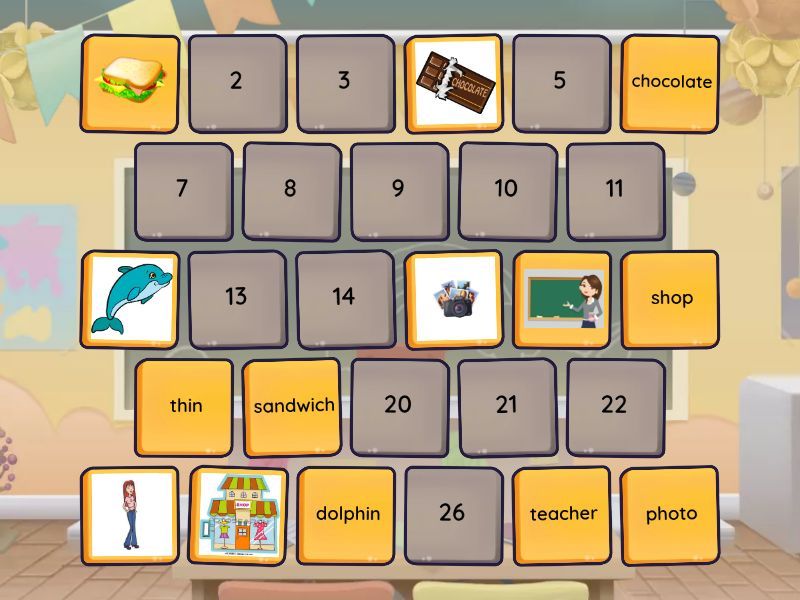 thin, shop, chocolate, sandwich, photo, teacher, dolphin, elephant, brother, fish, phone, moon, boots, read,