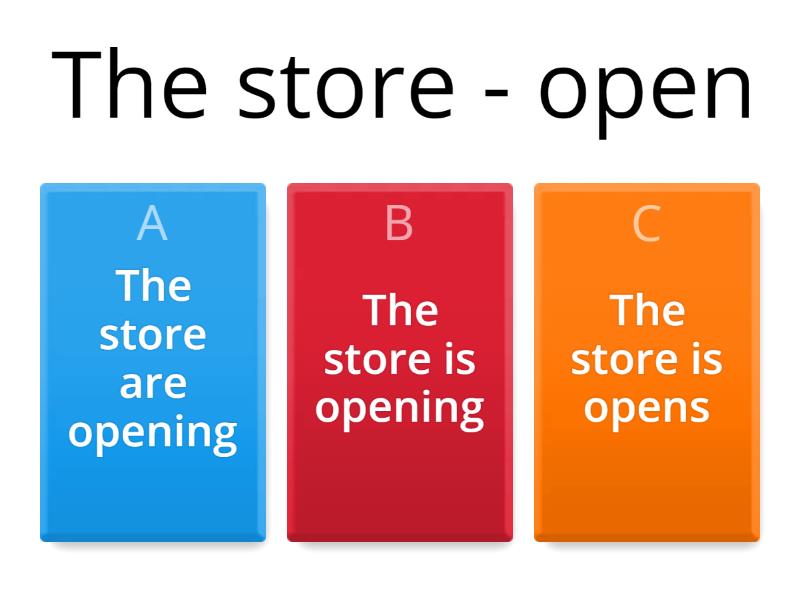 1) The store - open a) The store are opening b) The store is opening c) The store is opens 2) You - send emails a) you are sends emails b) you is sending emails c) you are sending emails 3) Luis - enjoy the film a) Luis is enjoying the film b) Luis are enjoyed the film c) Luis is enjoyed the film 4) Susan - play a) Susan is plays b) Susan is playing c) Susan are playing 5) I -study French a) I am studying french b) I are studying French c) I is studying French 6) Luis and Ana - watch TV a) Luis and Ana are waatches TV b) Luis and Ana is watching TV c) Luis and Ana are watching TV 7) The cat - sleep a) The cat is sleeps b) The cat is sleeping c) The cat sleep 8) You - eat a) you are eating b) you are eats c) you is eating