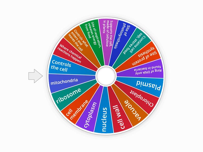 1) Controls the cell a) Chloroplast b) Ribosome c) Mitochondria d) Nucleus 2) Where chemical reactions happen a) Cell wall b) Plasmid c) Nucleus d) Cytoplasm 3) Controls what enters and leaves the cell a) Mitochondria b) Cell wall c) Cell Membrane d) Nucleus 4) Site of respiration, releases energy from food a) Nucleus b) Chloroplast c) Cytoplasm d) Mitochondria 5) Supports the cell, made of cellulose in plants a) Cell wall b) Vacuole c) Cell Membrane d) Mitochondria 6) Site of photosynthesis a) Chloroplast b) Cell wall c) Nucleus d) Cell Membrane 7) Contains cell sap, stores food a) Cell wall b) Mitochondria c) Vacuole d) Nucleus 8) Site of protein synthesis a) Plasmid b) Chloroplast c) Cytoplasm d) Ribosome 9) Ring of DNA only found in bacteria a) Cell Membrane b) Plasmid c) Nucleus d) Cell wall 10) Plasmid a) Ring of DNA found only in bacteria b) site of photosynthesis c) site of aerobic respiration 11) Chloroplast a) site of aerobic respiration b) controls what exits and enters the cell c) site of photosynthesis d) controls cell activities 12) vacuole a) controls cell activities b) site of chemical reactions c) contains cells sap d) site of aerobicrespiration 13) cell wall a) supports cell b) site of photosynthesis c) contains cell sap d) controls what enters and exits the cell 14) nucleus a) controls cell activities b) site of chemical reactions c) site of aerobic respiration d) controls what enters and exits cell 15) cytoplasm a) controls cell activities  b) site of chemical reactions c) site of protein synthesis d) controls what enters and exits the cell 16) cell membrane a) controls cell activities  b) site of chemical reactions c) site of photosynthesis d) controls what enters and exits the cell 17) ribosome a) controls cell activities  b) site of chemical reactions c) site of protein synthesis d) controls what enters and exits the cell 18) mitochondria a) site of aerobic respiration b) site of chemical reactions c) site of protein synthesis d) controls what enters and exits the cell