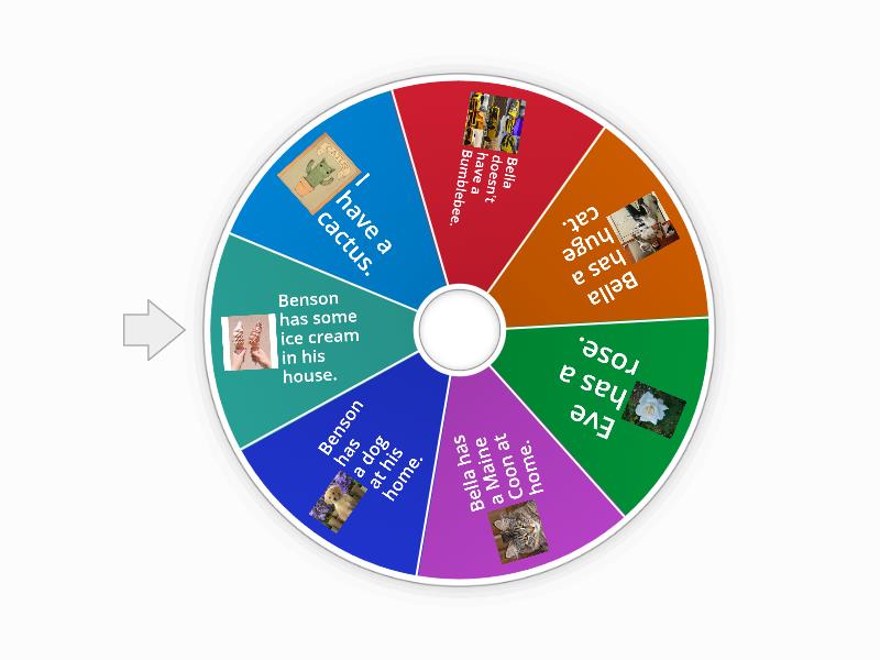1) I have a cactus. 2) Bella doesn’t have a Bumblebee. 3) Bella has a huge cat. 4) Eve has a rose. 5) Bella has a Maine Coon at home. 6) Benson has a dog at his home. 7) Benson has some ice cream in his house.