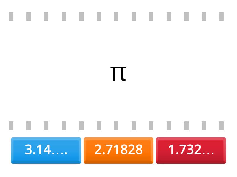 3.14…. - π, 1.732… - √3, 2.71828 - e,