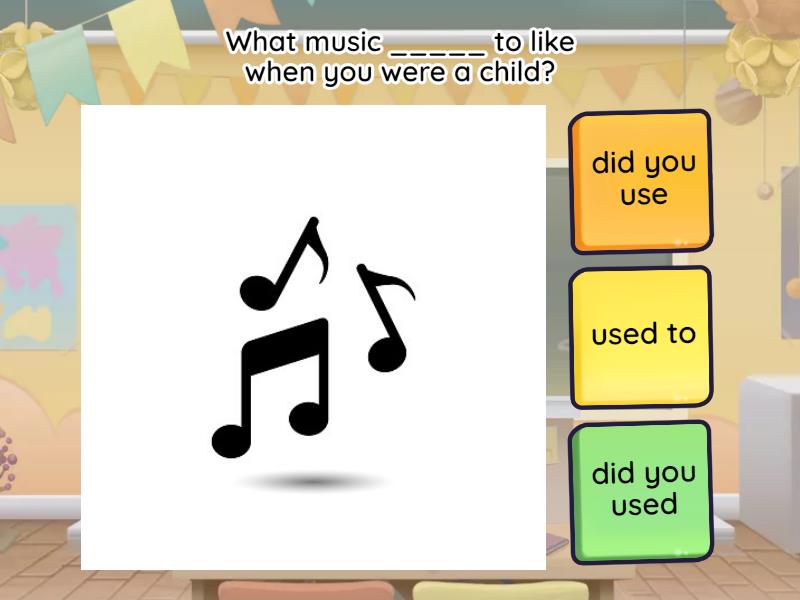 1) What music _____ to like when you were a child? a) did you use b) used to c) did you used 2) I ____ listen to music when I was a child. a) didn't used to b) didn't use to c) usen't to 3) What sweets ____ to eat as a kid? a) didn't used to b) did you use c) didn't used 4) People _____ eat more vegetables in their diets. Now everybody cares about their health. a) didn't use to b) used to c) did they use 5) Did you _____ live in Cusco when you were a child? a) use to b) use not to c) use 6) I ______ work in an office downtown New York. a) used to b) did used to c) used 7) We ______ to eat loads of fatty foods, but now we take better care of ourselves. a) didn't use to b) used to c) often 8) I ______ be several kilos heavier than I am now. a) didn't use to b) used to c) got used to