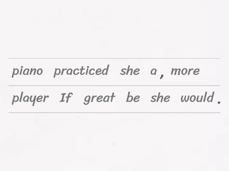 If she practiced more, she would be a great piano player., If we moved to another country, we would have a better life., If you took the train, you would get here more quickly., If he didn't go to bed so late, he would feel less tired., If the TV program had another presenter, it wouldn't be so popular., If I lost my flight, I would be very upset.,