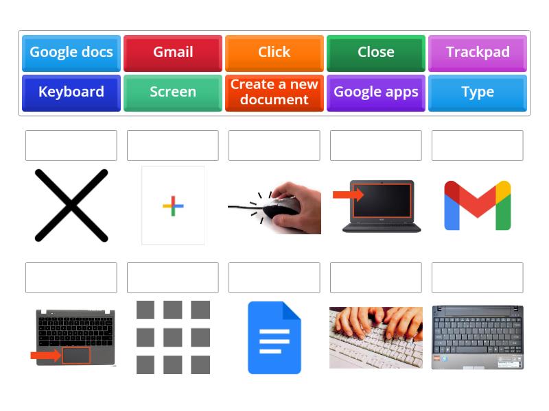 Gmail, Google apps, Google docs, Create a new document, Type, Click, Close, Screen, Keyboard, Trackpad,