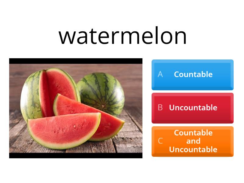 1) watermelon a) Countable b) Uncountable c) Countable and Uncountable 2) rice a) Countable b) Uncountable c) Countable and Uncountable 3) Oil a) Countable b) Uncountable c) Countable and Uncountable 4) onion a) Countable b) Uncountable c) Countable and Uncountable 5) meat a) countable b) uncountable c) Countable and Uncountable 6) carrot a) countable b) uncountable c) Countable and Uncountable 7) pepper a) countable b) uncountable c) Countable and Uncountable 8) bread a) countable b) uncountable c) Countable and Uncountable 9) lemon a) countable b) uncountable c) Countable and Uncountable 10) pasta a) countable b) uncountable c) Countable and Uncountable 11) cheese a) countable b) uncountable c) Countable and Uncountable 12) chicken a) countable b) uncountable c) Countable and Uncountable 13) banana a) countable b) uncountable c) Countable and Uncountable 14) yoghurt a) countable b) uncountable c) Countable and Uncountable 15) Rice a) countable b) uncountable c) Countable and Uncountable 16) Sugar a) countable b) uncountable c) Countable and Uncountable 17) honey a) countable b) uncountable c) Countable and Uncountable 18) sweets a) countable b) uncountable c) Countable and Uncountable