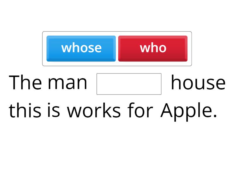 The man ____ house this is works for Apple. This is the job ____ I applied for last week. She's the woman ____ runs the biggest publishing company in Ireland. I want to visit the place ____ my grandfather grew up. The man ____ you spoke to is the CEO of a large chain of supermarkets. The girl ____ won last year's prize is now a successful businesswoman. The book ____ he wrote about his experiences became a bestseller. They're the students ____ teacher appeared on TV last week.